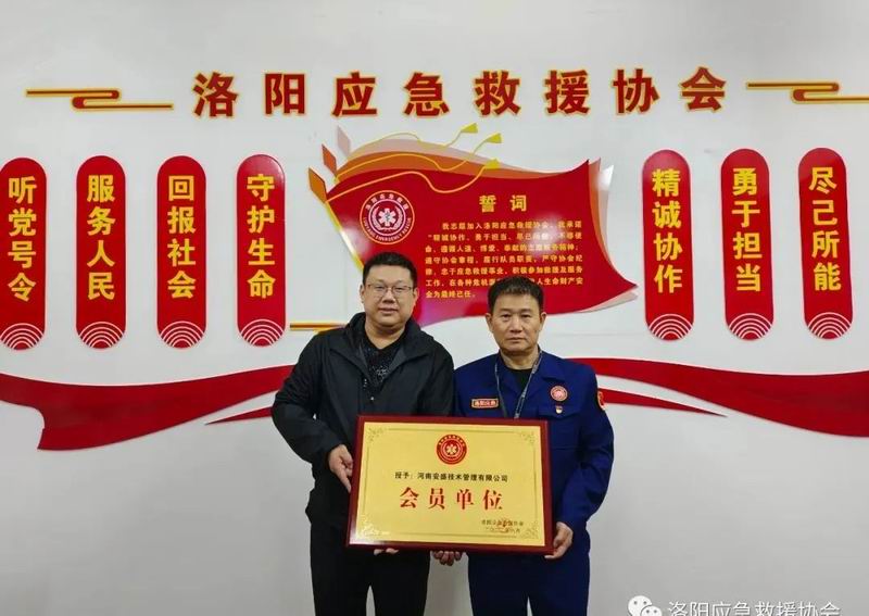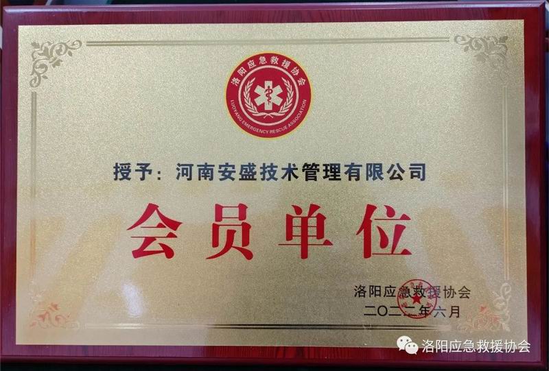 河南安盛技術(shù)管理有限公司被洛陽(yáng)市應(yīng)急救援協(xié)會(huì)授予會(huì)員單位牌匾